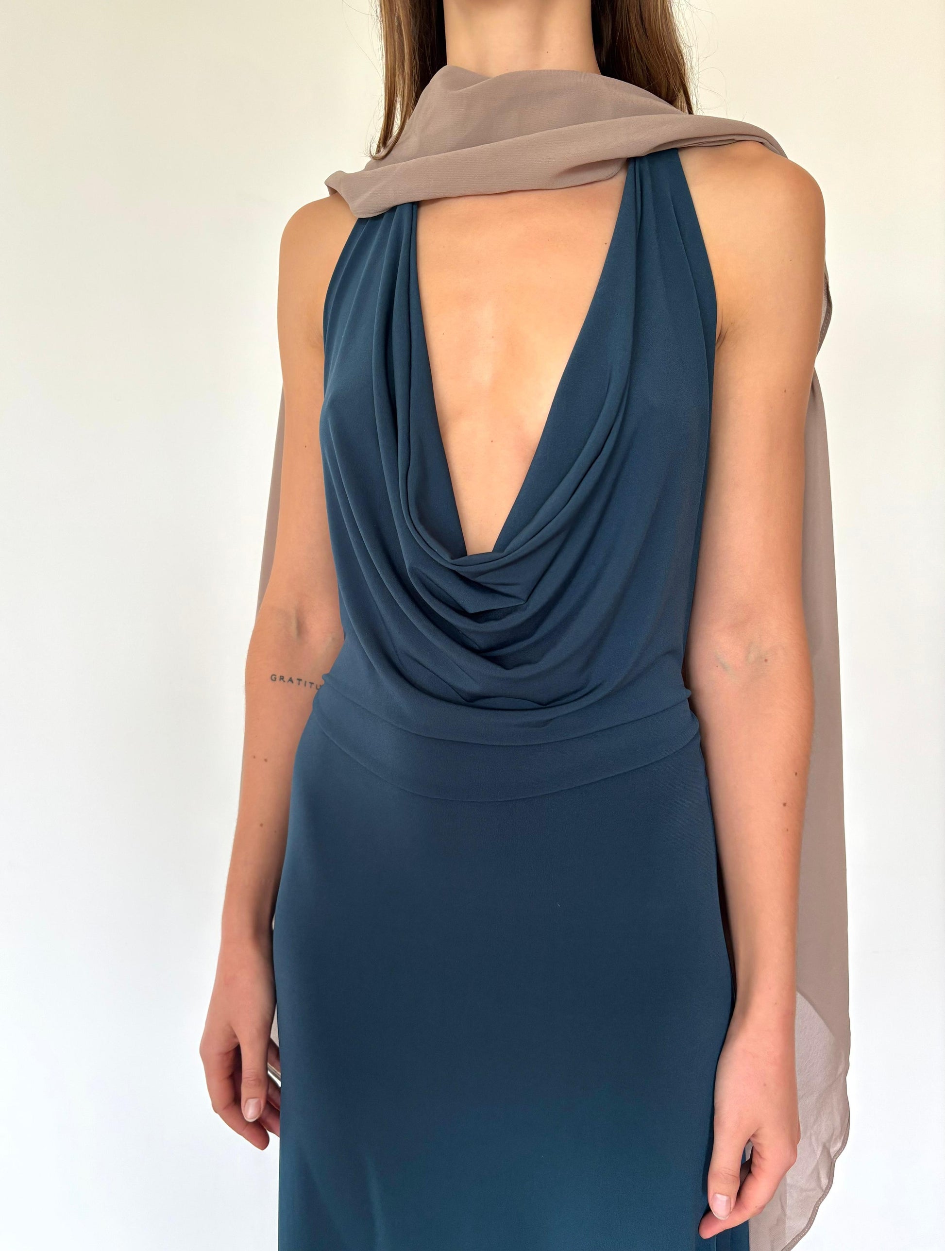 Confeccionada de gasa ligera y fluida nuestra capa te dará un toque elegante y sofisticado para un evento tanto de día como de noche. Su forma te peritará jugar con tu look, por ejemplo tapando tus brazos o arremangarla al cuello dejándola caer solo en la espalda.