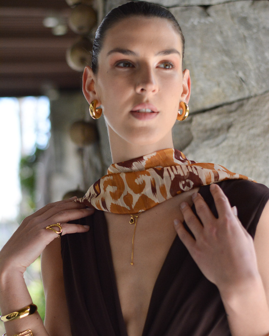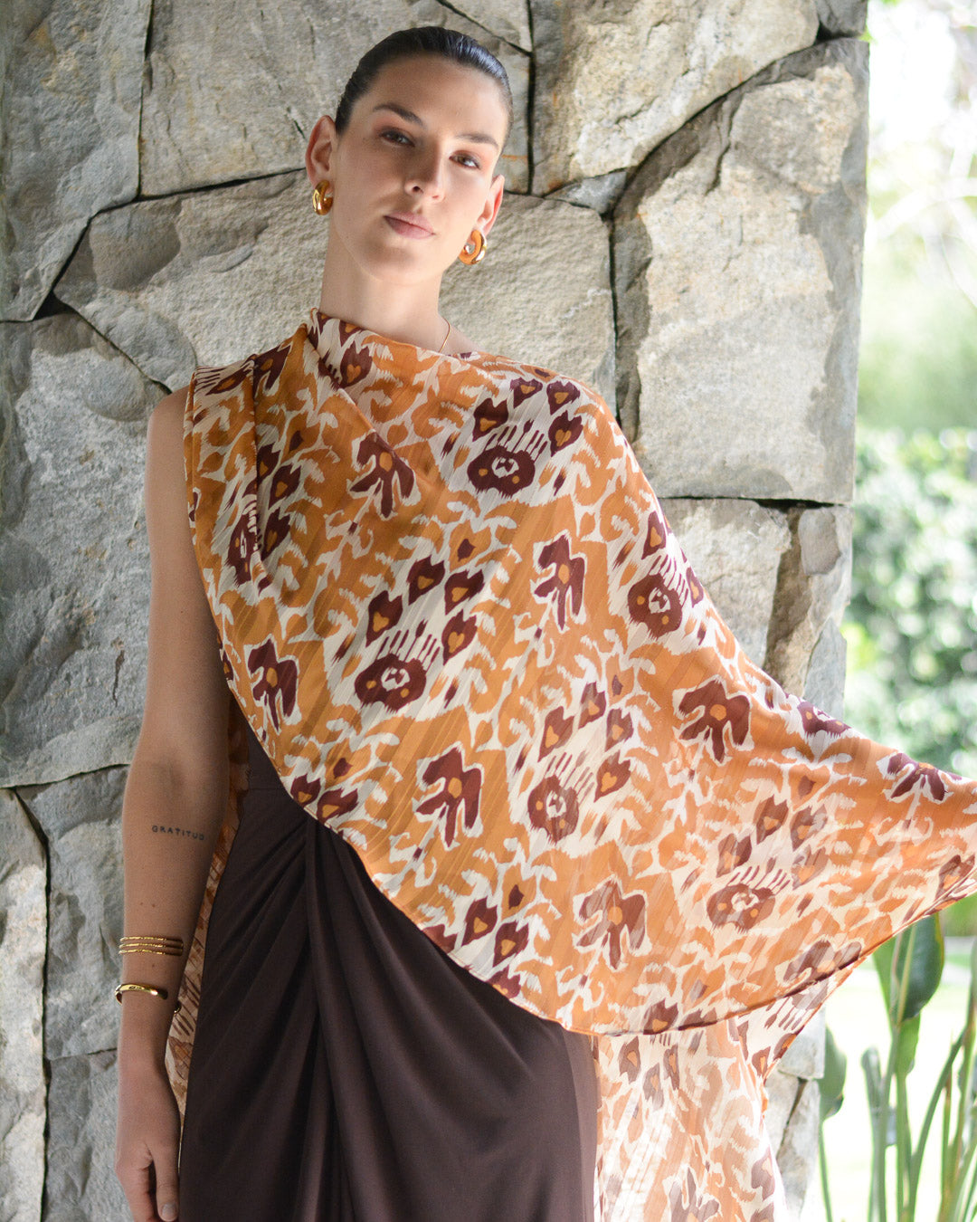 Capa Gasa Estampada Café