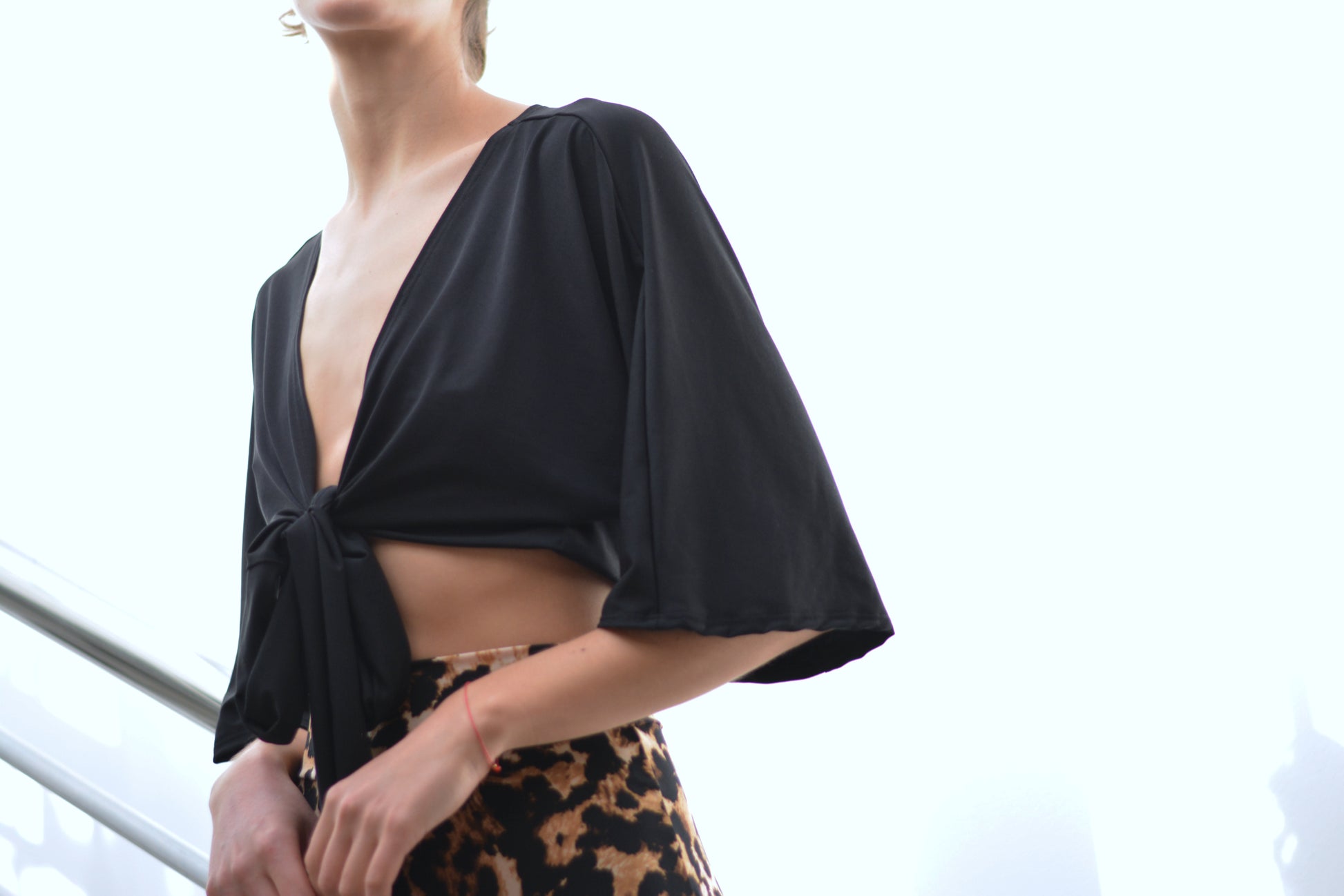 Disfruta de la comodidad y estilo del top de mangas murciélago. Confeccionado en tela lycra fría, este top se adapta a tu cuerpo con las amarras delanteras que permiten ajustarlo a diferentes tallas.