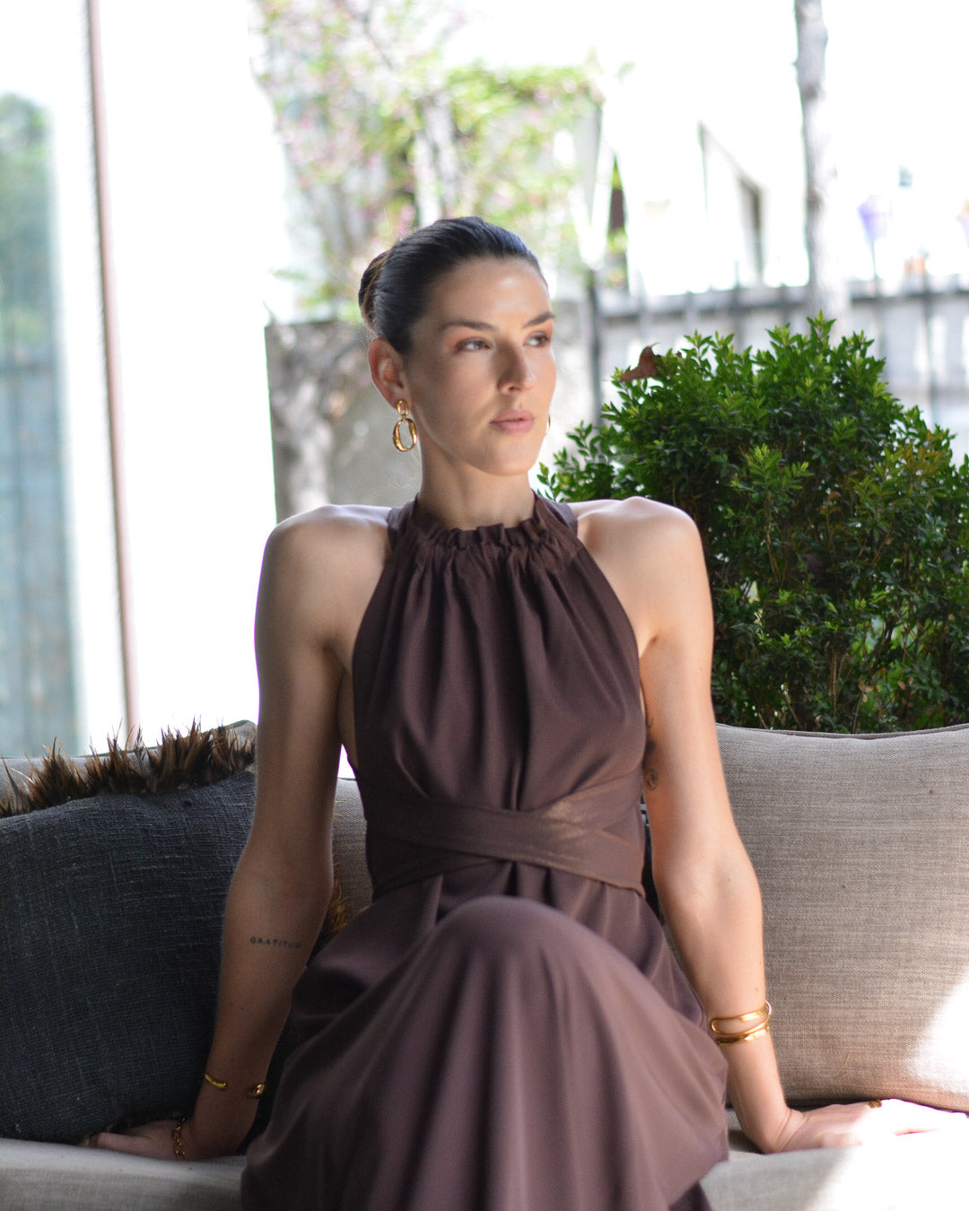 El Vestido Colomba es un vestido versátil y liviano confeccionado en poli seda.