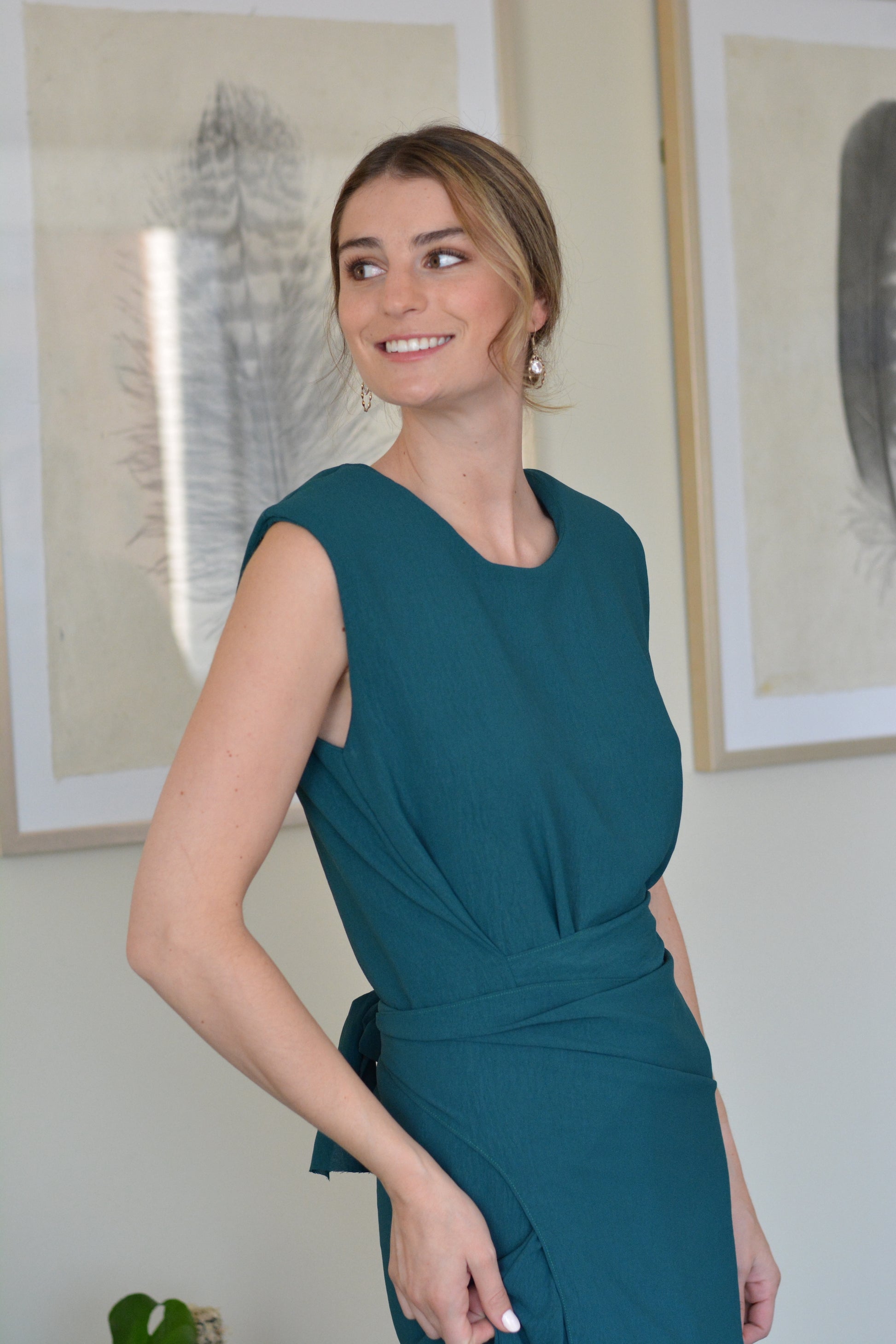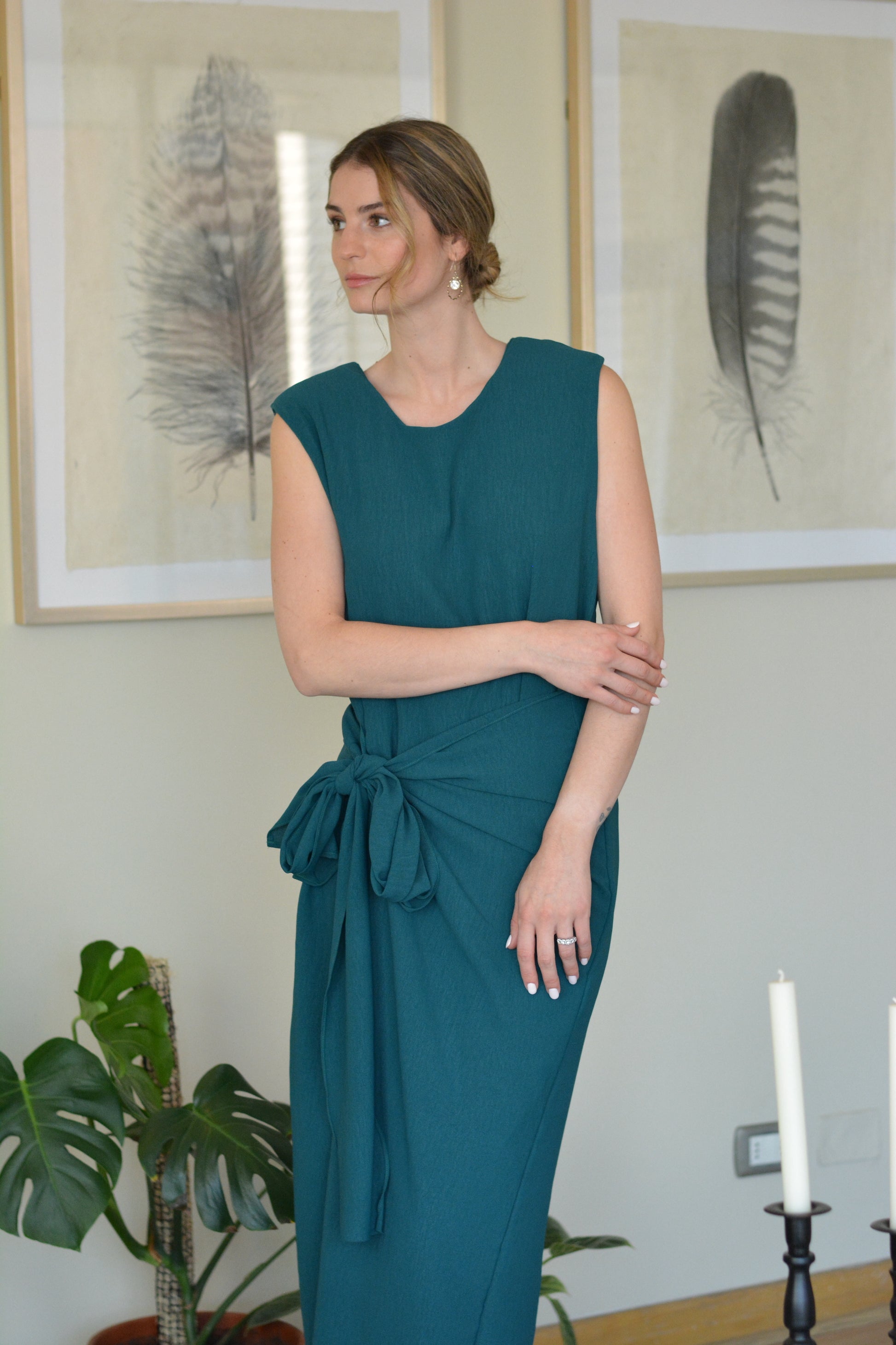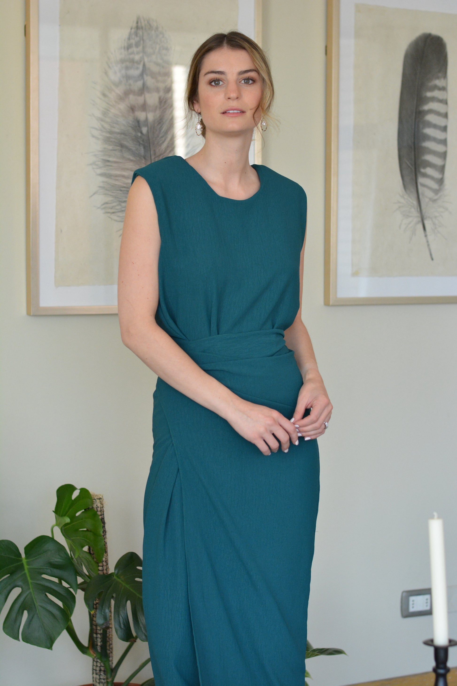 Viste con elegancia y versatilidad con el Vestido Joaquina . Con hombreras para una apariencia sofisticada y dos maneras de amarrarlo para un estilo único, este vestido es perfecto para cualquier ocasión. Hecho de crepe te garantiza comodidad y durabilidad.