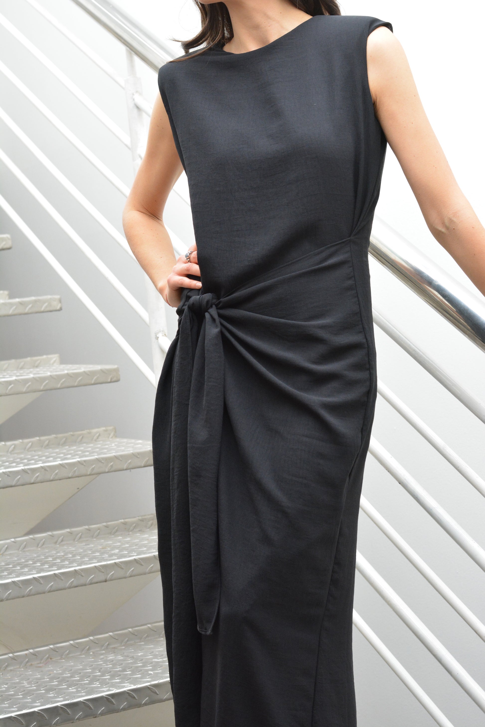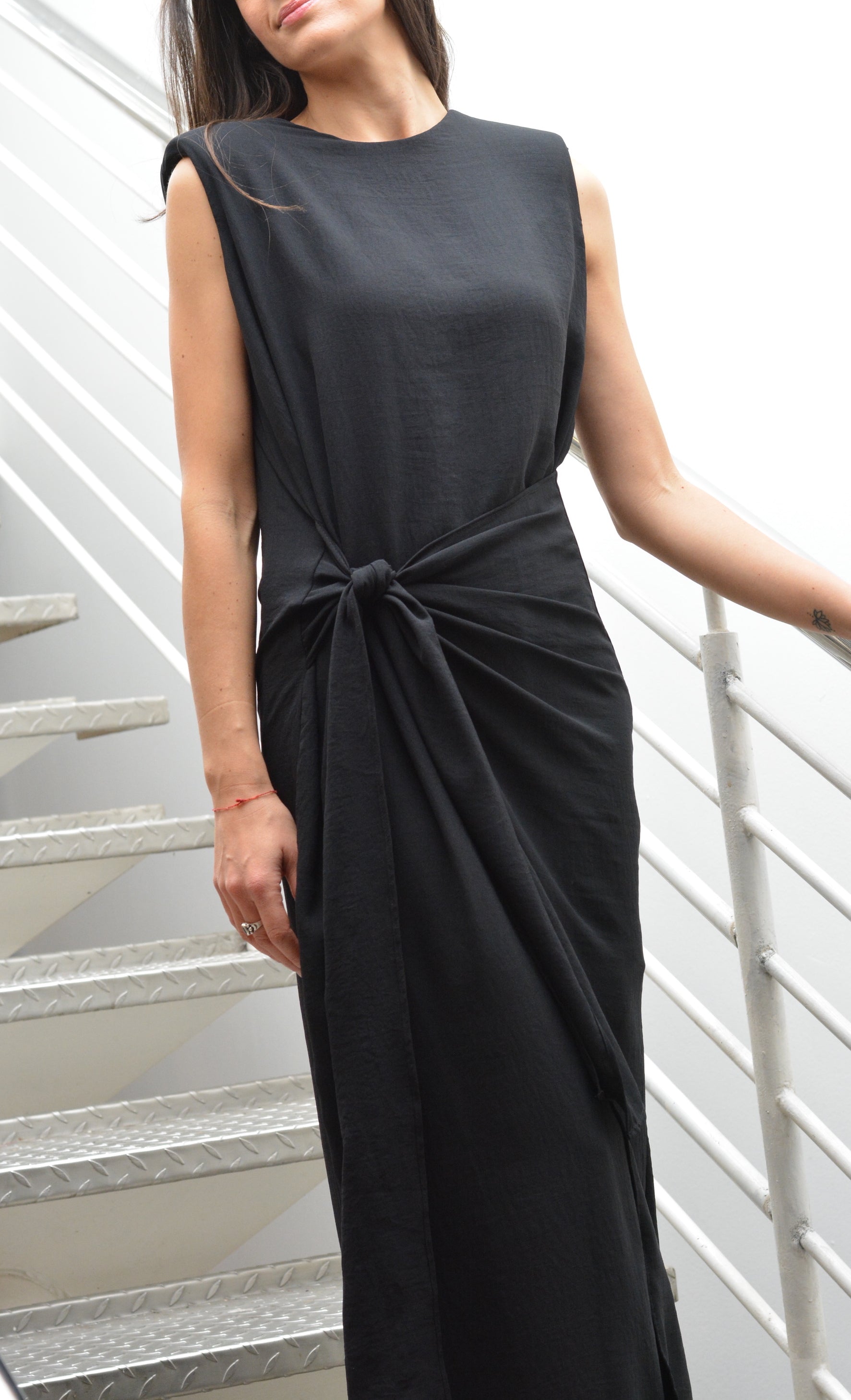 Viste con elegancia y versatilidad con el Vestido Joaquina . Con hombreras para una apariencia sofisticada y dos maneras de amarrarlo para un estilo único, este vestido es perfecto para cualquier ocasión. Hecho de crepe te garantiza comodidad y durabilidad.